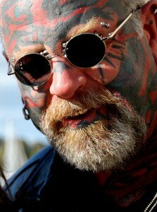 The Scary Guy – his legal name, changed fifteen years ago – has dedicated his life to teaching others his powerful, solution-based theories and concepts on human behaviour and communication; a code that he’s personally developed and lives by today. With his face fully tattooed, often describing himself as the worlds’ only living social experiment, Scary’s research is based on having to learn how to redefine his own life, in order to stop living as a victim of other peoples’ words and actions. All this, whilst maintaining his integrity and learning how to love and understand all people.